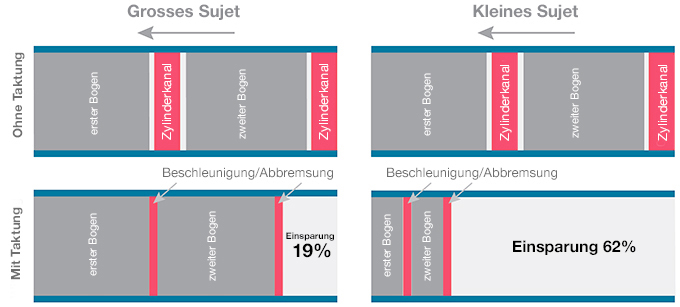 Zu guter Letzt bietet Manroland Sheetfed´s Kaltfolientechnologie nun auch die Möglichkeit der Folientaktung. Durch die Taktung wird der Materialverlust von 19% bis 62% reduziert.