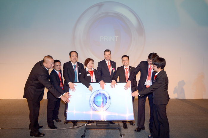 此外,在开幕式上,曼罗兰大中华区华董事长贺文先生率领其大中华区高级管理层,包括:平张印刷设备部及市场部总经理谭文浩先生,首席财务总监陈芬妮女士,工程服务及零件部总监/轮转部总监许顺安先生,材料部总监陆伟强先生,曼罗兰平张印刷系统有限公司市场及企业传讯部全球总监顾敏华小姐,曼罗兰轮转印刷系统有限公司驻华首席代表武欣欣先生,以及曼罗兰中国战略合作伙伴富士施乐(中国)有限公司生产型设备销售运营总经理邓国俊先生,一起把右手放在触摸屏上,一触揭开了曼罗兰Print China 2015的精彩序幕。